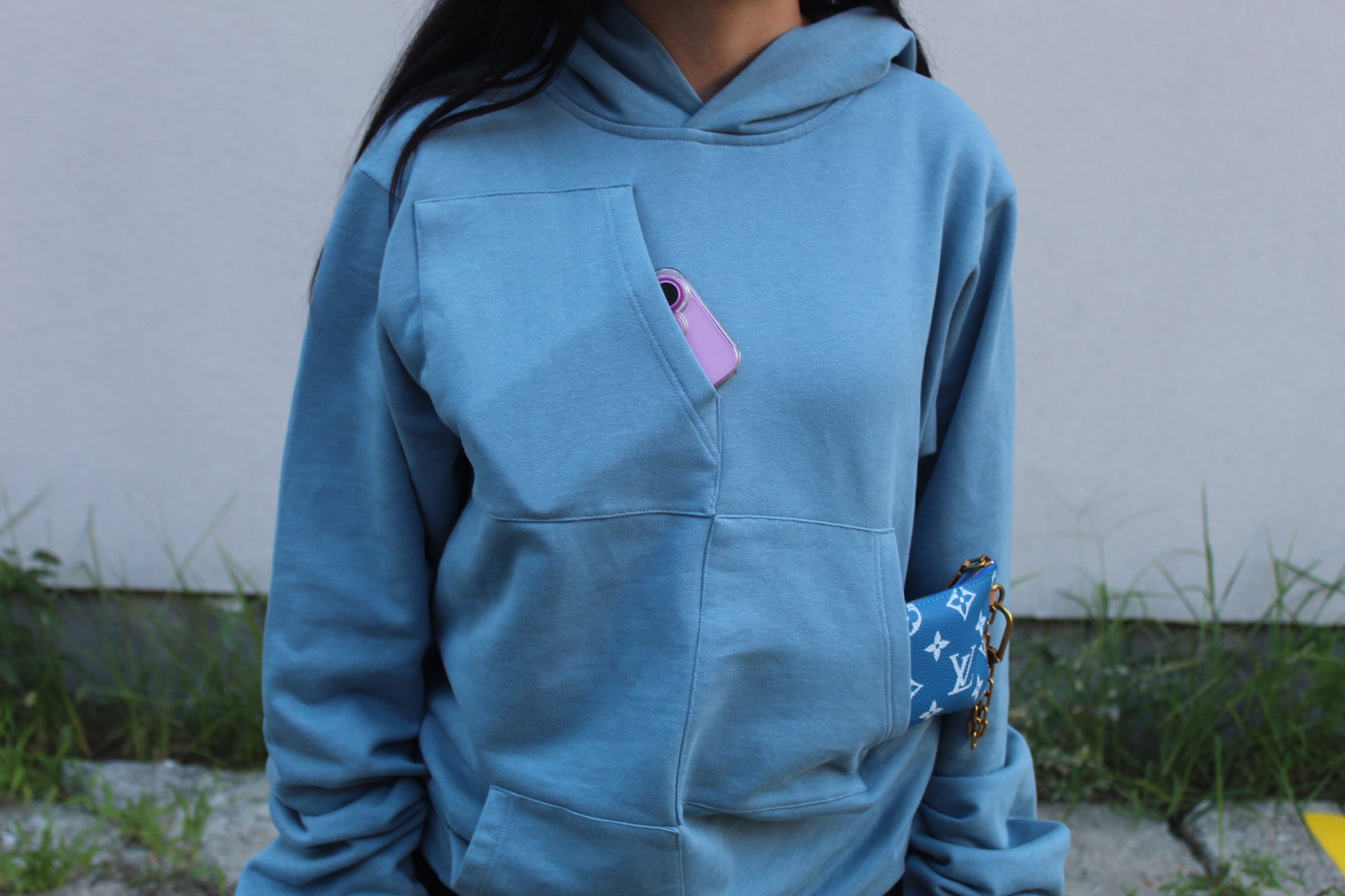 A sleek hoodie made from 380 gsm cotton in a fall blue.